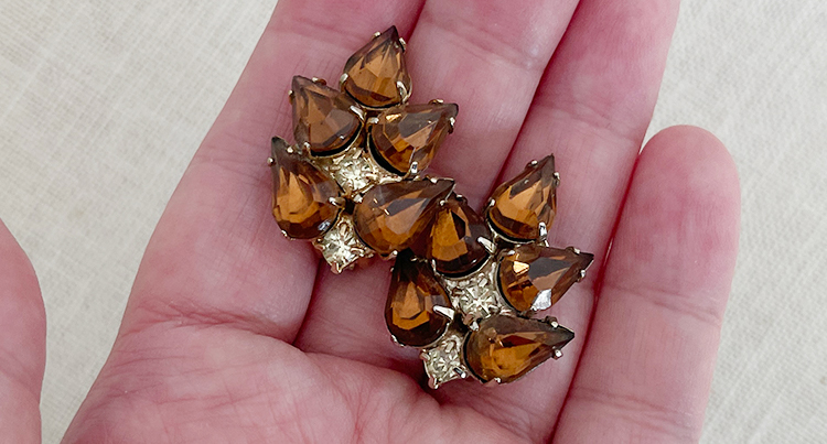 | 위스키 토파즈 컬러 페어쉐입 라인스톤 클립이어링 |