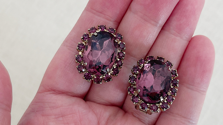 | 퍼플 라인스톤 스테이트먼트 클립이어링 |