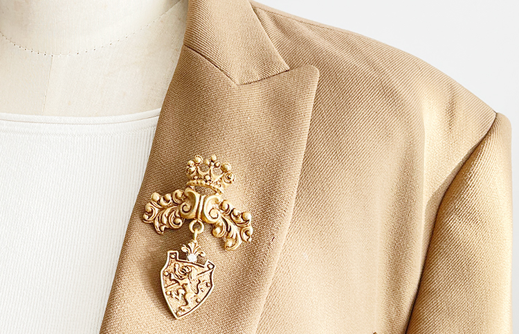 | 골드톤 메탈 크레스트 댕글 크라운 핀 |