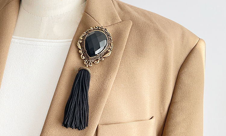 | 블랙 패싯 스톤 앤 타슬 스테이트먼트 브로치 |