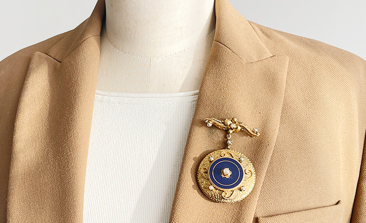 | 미드센츄리 네이비 플레이트 댕글 브로치 |