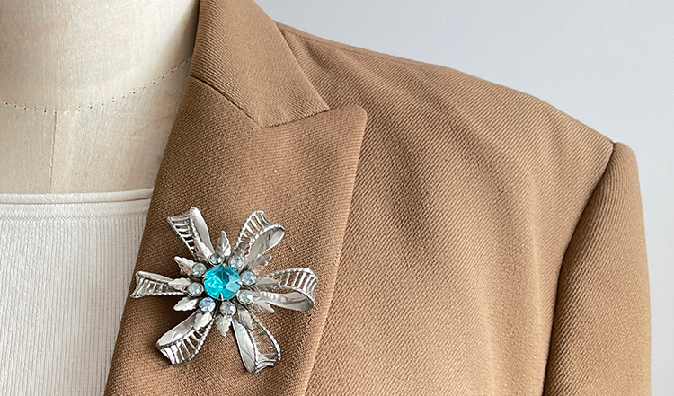 | 1950년대 실버톤 메탈 프로스티블루 스톤 브로치 |