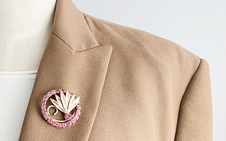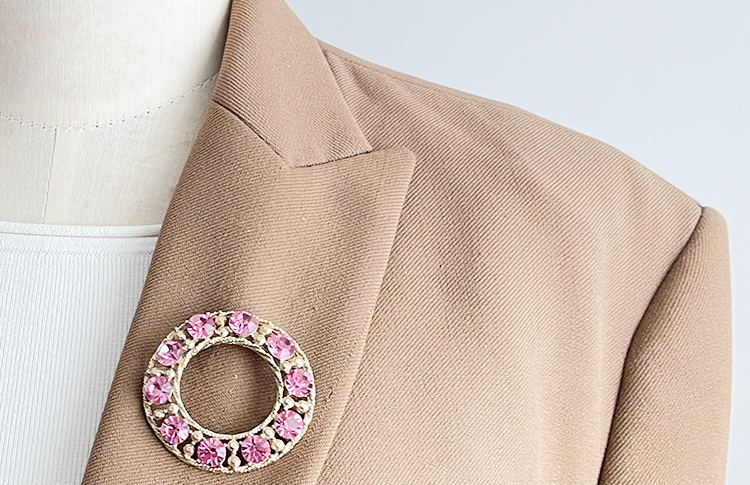 | 1950년대 WEISS 핑크 라인스톤 라운드 브로치 |